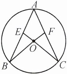 ∴OB=OC. 在$\triangle EOB$和$\triangle FOC$中,$\left\{\begin{array}{l} \angle B=\angle C,\\ OB=OC,\\ \angle EOB=\angle FOC,\end{array}\right. $