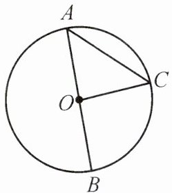 弦有AB, AC, BC;半径有OA, OB, OC;直径是AB;$\overset{\frown}{ABC}$,$\overset{\frown}{CAB}$是优弧;劣弧有$\overset{\frown}{AC}$,$\overset{\frown}{BC}$;半圆是$\overset{\frown}{AB}$;OA=OB=OC.