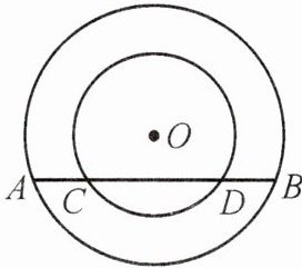 15. (曲靖沾益区月考)已知在以点O为圆心的两个同心圆中,大圆的弦AB交小圆于点C,D。(如图所示)
