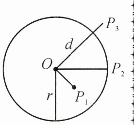 (3)点$P$在圆内$\Leftrightarrow$____。
