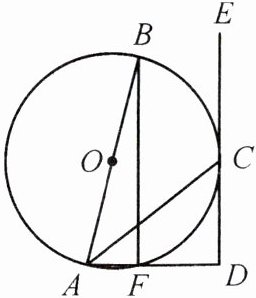 1. (昆明中考) 如图,$AB$ 是 $\odot O$ 的直径,$ED$ 切 $\odot O$ 于点 $C$,$AD$ 交 $\odot O$ 于点 $F$,$AC$ 平分 $\angle BAD$,连接 $BF$.