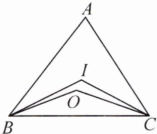13. 如图所示,点 I 为△ABC 的内心,点 O 为△ABC 的外心.若∠BOC=140°,求∠BIC 的度数.