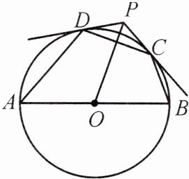 14. (北京中考改编)如图,AB 是⊙O 的直径,过⊙O 外一点 P 作⊙O 的两条切线 PC,PD,切点分别为 C,D,连接 OP,CD.
