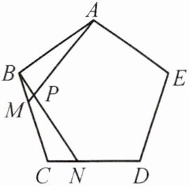 14. (内江中考)如图,点M,N分别是正五边形ABCDE的边BC,CD上的点,且$BM = CN$,AM交BN于点P。