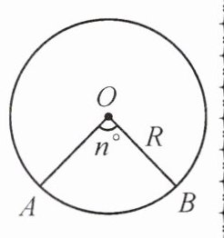 则$\overset{\frown}{AB}$的长$l = \frac{n}{360} × 2\pi R = \frac{n\pi R}{180}$。