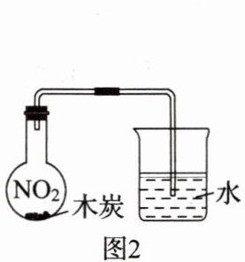 反应(填“氧化”或“还原”)。(2) 图 2 所示实验中,向盛有红棕色二氧化氮气体的烧瓶中放入几小块烘烤过的木炭,迅速塞上单孔橡皮塞,观察到的现象是