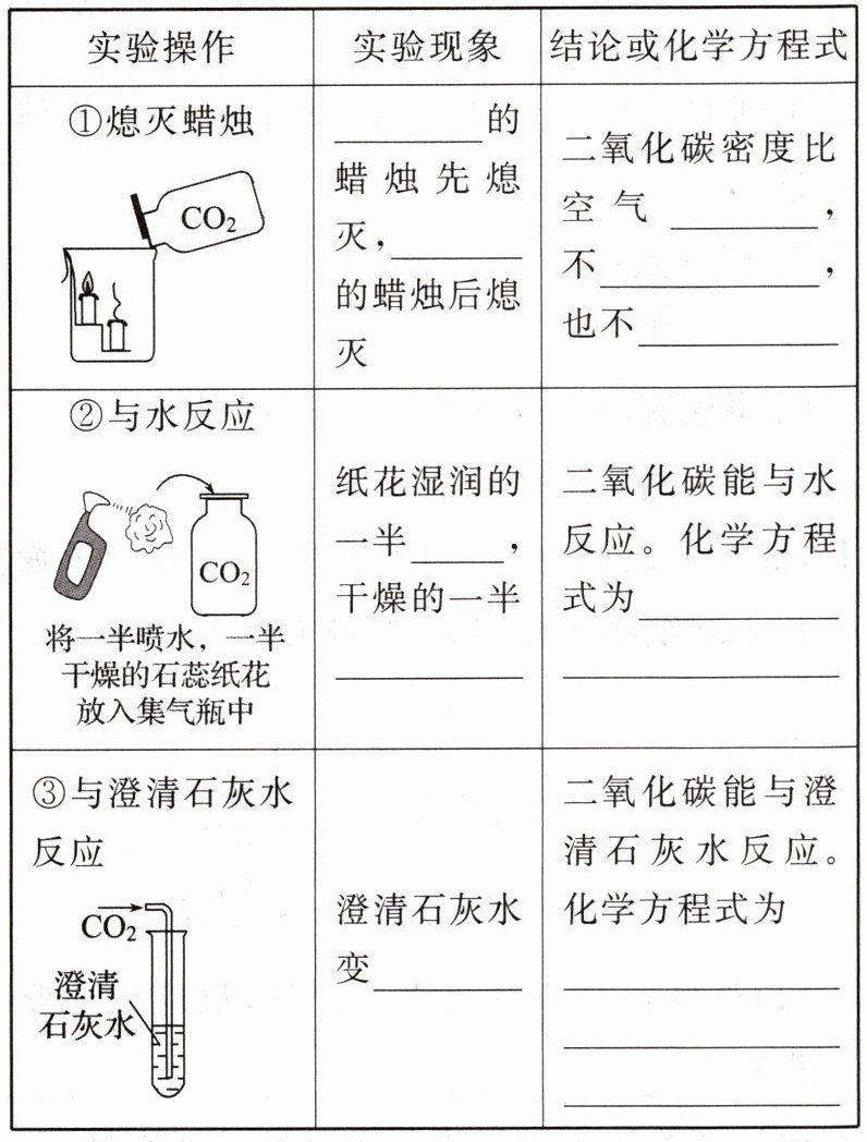 2.下层 上层 大 能燃烧 支持燃烧 变红 不变色 CO₂+H₂O══H₂CO₃ 浑浊 Ca(OH)₂+CO₂══CaCO₃↓+H₂O