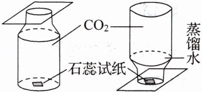 8.(2024·泸州中考)向一集满${CO_{2}}$的集气瓶中放入一片蓝色石蕊试纸,注入适量的蒸馏水,盖上玻璃片,上下振荡,再将其倒置(如图),把手移开,玻璃片没有掉下来。蓝色石蕊试纸在注入蒸馏水并振荡后变红。依据现象一定能得出对应结论的是 (