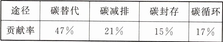 。(3)控碳:科学家预测,到2050年主要控碳途径对全球碳中和的贡献率如表: