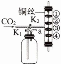 6. (2024·渭南一模)如图所示是探究二氧化碳性质的实验装置(夹持仪器略),气体从最左端玻璃管口进入,其中右边铜丝上的①④是紫色石蕊溶液润湿的棉球,②③是浸过紫色石蕊溶液干燥后的棉球。下列说法错误的是(