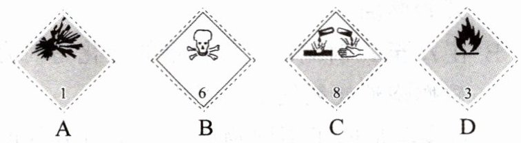 1. 以下是常见的危险品标志,装运酒精的包装箱应贴的标志是(