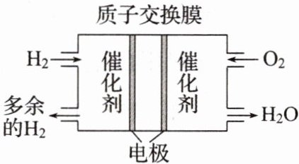 (3)氢气在燃料电池中有着较高的地位。如图为氢燃料电池的工作原理示意图。将氢气送到燃料电池中,经过催化剂的作用,通过质子交换膜,再与氧气反应,同时产生电流。请写出氢燃料电池中发生反应的化学方程式:$\qquad$。