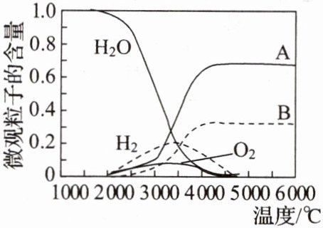 ②水热分解可得氢气,高温下水分解体系中微观粒子含量与温度的关系如图所示,如图中曲线A、B对应的微观粒子依次是$\qquad$(填符号)。