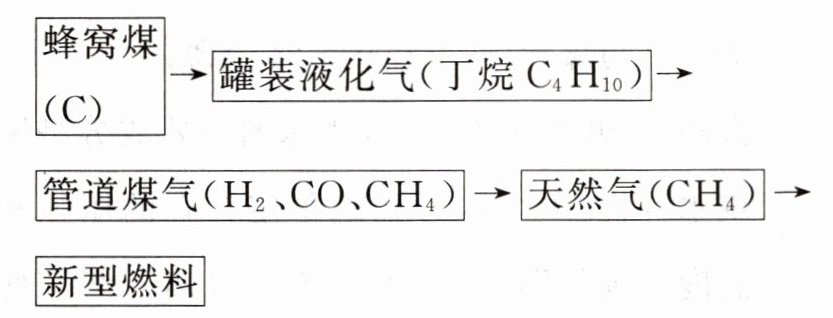 管道煤气($\mathrm{H_2}$、$\mathrm{CO}$、$\mathrm{CH_4}$) $\longrightarrow$ 天然气($\mathrm{CH_4}$) $\longrightarrow$新型燃料