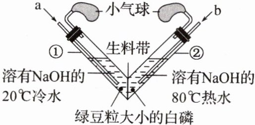 3. (2024·无锡中考)用如图所示装置进行“探究燃烧条件”的对比实验:a 处通入氧气,管①中白磷未燃烧,b 处通入氧气,管②中白磷燃烧。下列叙述错误的是(