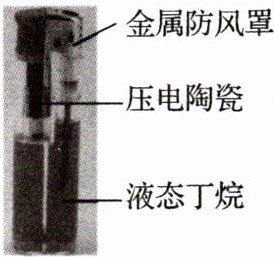 查阅资料:常温常压下,汽油的沸点范围是$30\sim 205^{\circ }C$,着火点约为$427^{\circ }C$。丁烷常温常压下是一种无色、易液化的气体,沸点为$-0.5^{\circ }C$,着火点约为$405^{\circ }C$。打火机的原理主要利用了压电效应,按下开关的瞬间,储气阀门开启,释放出气态丁烷,同时压电陶瓷产生电火花,温度可达$1000^{\circ }C$以上。