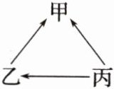 3. (2024·桂林二模)现有甲、乙、丙三种金属,将其中一种金属分别放入另外两种金属的硫酸化合物溶液中,得到三种金属间的转化关系如图所示,则三种金属活动性由强到弱的顺序是(