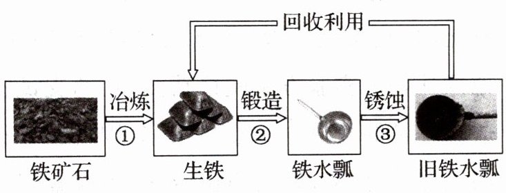 5. 如图为铁制品循环利用的示意图,根据图示回答下列问题。
