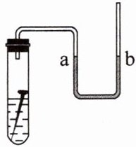2. 如图所示,在盛水的试管中放一根洁净的铁钉,用带 U 形管的胶塞塞紧,U 形管内液面处于同一高度,数天后观察 U 形管内的水面(