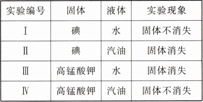 )A.Ⅰ和Ⅱ对比——碘几乎不溶于水,却能溶解在汽油中