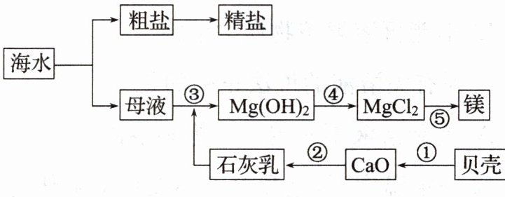 (3)步骤①为贝壳的主要成分碳酸钙分解产生氧化钙和二氧化碳,属于分解反应。