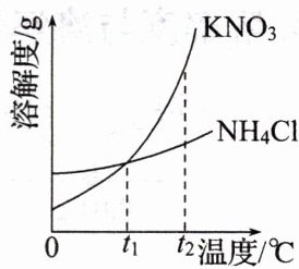 B.t₂℃时,NH₄Cl 的溶解度比 KNO₃的溶解度小