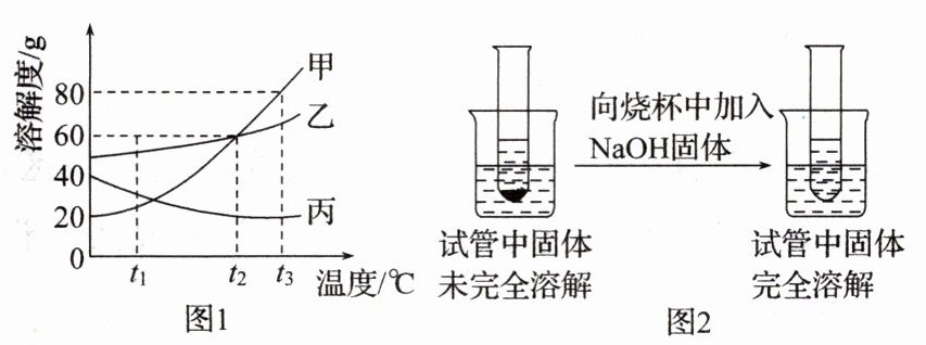 8. (2024·广元中考)甲、乙、丙三种固体的溶解度曲线如图1所示,如图2是选用图1中某种固体进行实验时的情况。下列说法正确的是(