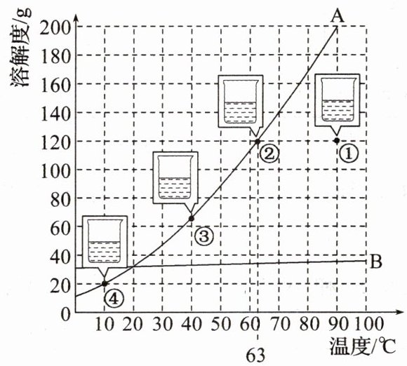 7. (2024·广西模拟)固体物质A、B的溶解度曲线如图所示,①②③④是分别用100g水配制的不同状态下的A溶液,下列说法正确的是(