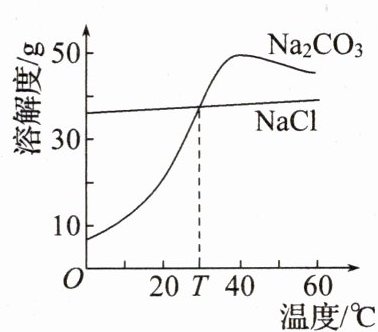 D.$T$℃时,$Na_{2}CO_{3}$和NaCl两种饱和溶液的溶质的质量分数相等