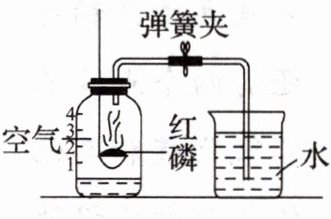 1. 如图所示装置可用于测定空气中氧气的含量,实验前在集气瓶内加入少量水,并做上记号。下列说法不正确的是(