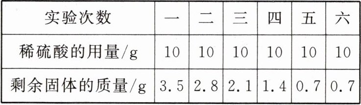 6. 硅钢是变压器、电感器中的核心材料,其主要成分是Fe和Si。某学生用硅钢样品做了如下实验:取4.2g硅钢样品,将60g稀硫酸分6次加入样品中(其中稀硫酸与硅及其他杂质不反应),充分反应后过滤、洗涤、干燥、称重,得到的实验数据如下