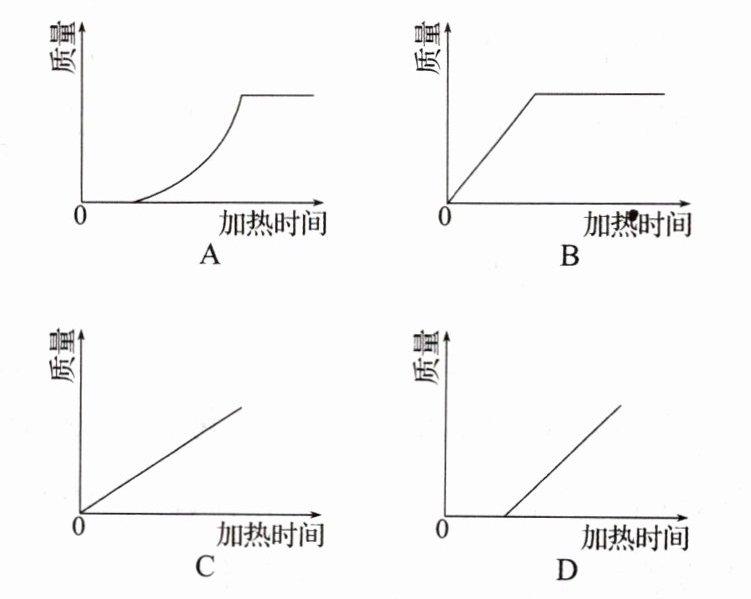 2. 取一定质量高锰酸钾制取氧气,充分加热,高锰酸钾完全分解。下列图像中最有可能反映该过程中氧气质量变化的是(