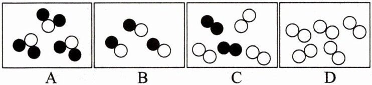 分析:下列微观图是某些物质分子的示意图,图中的“●”和“○”分别表示两种不同的原子。其中属于混合物的是