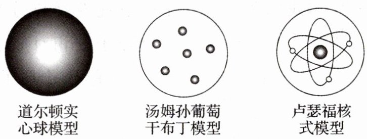 )A.道尔顿认为原子是不可再分的实心球,是构成物质的最小粒子