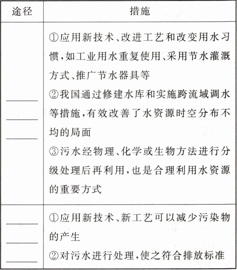 (1)合理利用水资源;防治水体污染;提高水的利用效率;减少污染物进入自然水域。(2)工业“三废”;生活污水;农药;化肥。