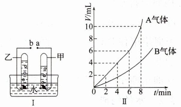 11. 某化学实验小组用石墨电极按照图Ⅰ装置电解水以验证水的组成,同时测得正负极收集到的气体体积随时间变化如图Ⅱ所示,请回答以下问题: