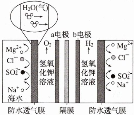 8. (2024·海南中考)我国科学家发明的无淡化海水直接电解制氢技术,利用防水透气膜将海水和电解槽隔离开,从根本上解决了海水杂质离子对设备的腐蚀问题,其工作原理如图所示。下列有关说法不正确的是(