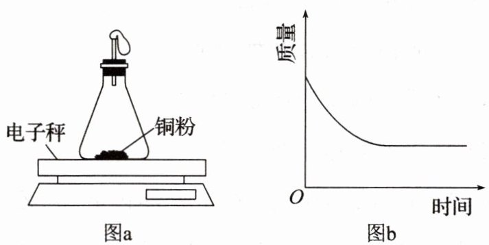 7. 某小组同学通过铜与氧气反应验证质量守恒定律(如图a所示),锥形瓶中固体部分变为黑色,实验过程中瓶内物质或元素质量变化与图b相符的是(