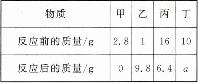 4. (2024·云南中考)密闭容器内有甲、乙、丙、丁四种物质,在一定条件下充分反应,测得反应前后各物质的质量如表所示。下列说法错误的是(