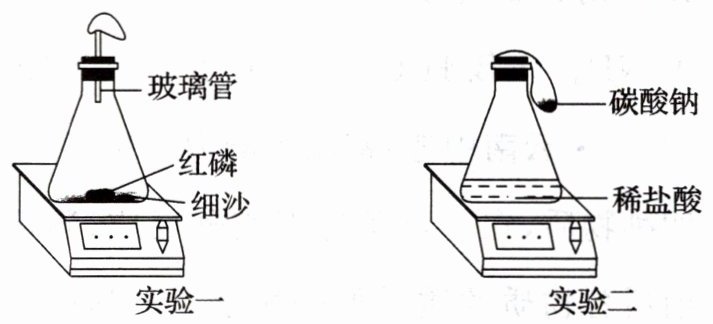 (1)实验一:称量装置和试剂的总质量为m₁保持装置密闭。使红磷燃烧,待装置冷却后。再次称量装置和试剂的总质量为m₂,m₁与m₂的大小关系是m₁