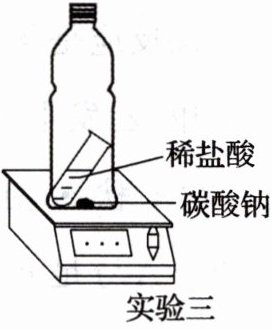 ;(3)为克服实验二中气球受浮力的影响。在实验三中利用硬塑料瓶改进实验装置,用电子天平称量装置和试剂的总质量,接下来的实验操作