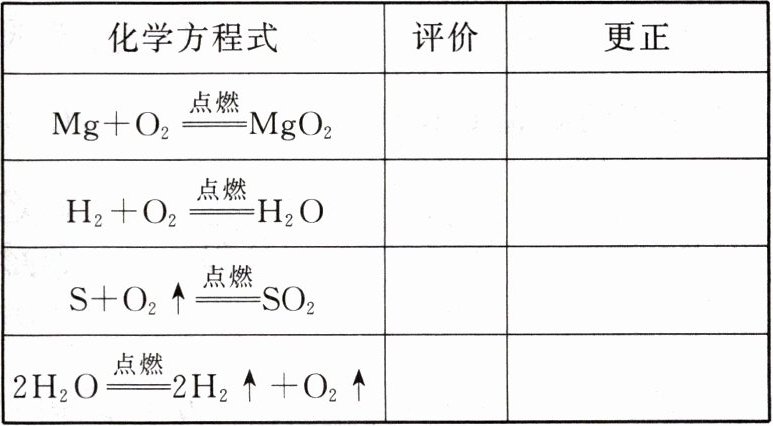 5. 请对表中写错的化学方程式进行评价(填写评价序号),并更正。
