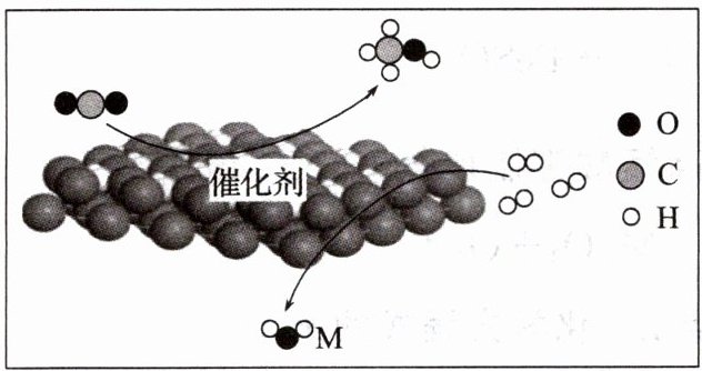 。(3)碳转化:一定条件下,将二氧化碳和氢气在催化剂表面转化成有机清洁燃料甲醇(CH₃OH)和M,其反应原理如图所示:
