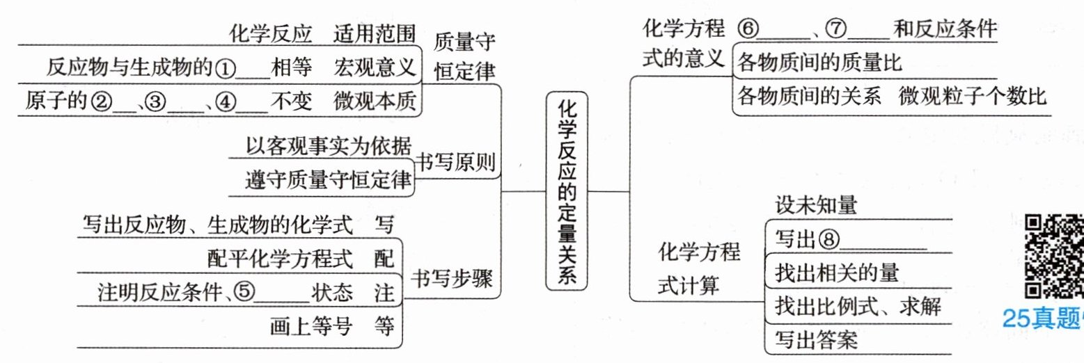 ①总质量 ②种类 ③数目 ④质量 ⑤生成物 ⑥反应物 ⑦生成物 ⑧化学方程式