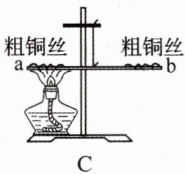 在一根用细铜丝吊着的长玻璃棒两端分别绕上10cm长的粗铜线,并使玻璃棒保持水平。然后,用酒精灯给左边一端铜丝加热1~2分钟。冷却后,他们观察到的现象是