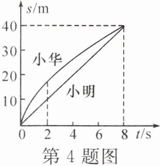 4. 课外活动时,小明和小华在操场上沿直跑道跑步,他们通过的路程与时间的关系如图所示,则下列说法正确的是(