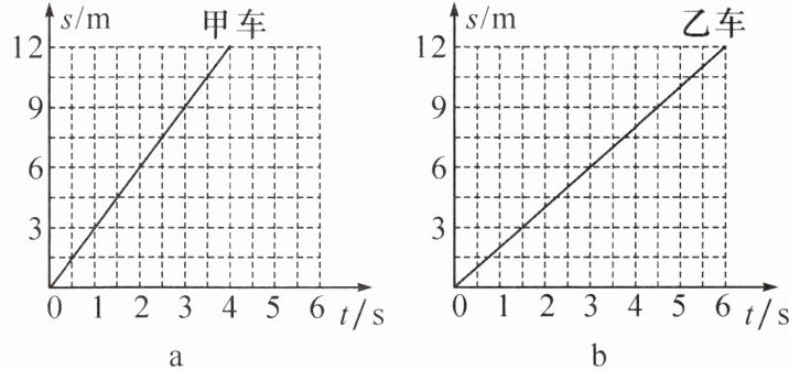8. (2024·自贡)P、Q 是同一直线上相距 12 m 的两点,甲、乙两小车同时经过 P 点向 Q 点做直线运动,它们的 s-t 图像分别如图 a、b 所示。则(