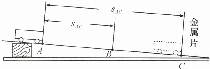 的坡度。(2)B 为 AC 中点,$s_{AC}=1m$,两次实验小车都从 A 点由静止下滑,到达 C 点所用时间为 2.8 s,到达 B 点所用时间为 2 s,则小车通过 AB 段的平均速度为