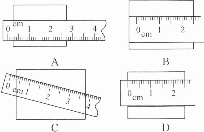 (2)放:零刻度线对准被测物体的一端,有刻度线的一边要紧靠被测物体且与被测边保持