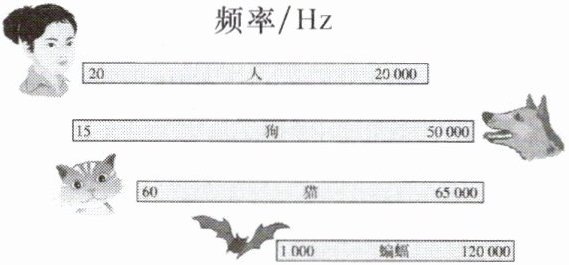 6. (多选)如图是人和几种动物的听觉频率范围。某种飞蛾飞行时在1min内翅膀振动1080次,不考虑距离因素,则这种飞蛾飞行时发出的声音(
